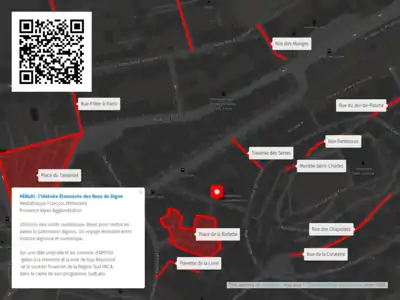 - "A customized map with linked audio descriptions highlighting the cultural history of the town of Digne in France."