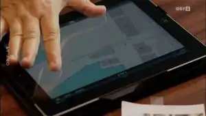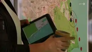 In the episode "Winternebel" (broadcasted on Oct 5th, 2014) the investigators in many different moments use OSM Maps in various forms: A big map on a board, a map shown on a tablet and a folder with one page maps extracted from OSM. I have made good screenshots which (at least according to German law) could be used as picture citations, but certainly not under CC-SA. Maybe I should ask the copyright holder, or what else could be done to give a bit of publicity to this way OSM data has been used? ... ----Hatzfeld (talk) 07:43, 6 October 2014 (UTC)