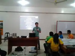 OSM Workshop at Software Freedom Day 2012. Maning is shown in this photo leading a workshop on OpenStreetMap during the Software Freedom Day celebrations in the Philippines held last September 15, 2012. | |