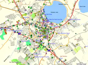 New OSMPH Garmin map style. The OSM Philippines community released an improved Philippine Garmin map last July 2011. Among the many improvements is a new default style with better colors and new icons that display more varied types of POIs. The style helps to showcase the wealth of information that have been added by mappers in the country as evident in this screenshot centered on San Pablo City in Laguna. | |