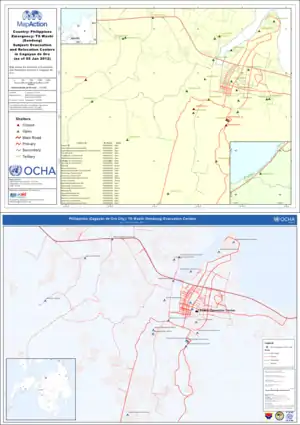 Sendong maps. In the wake of any natural disaster, easily- and fast-obtainable mapping data is a must for assessing the situation, and coordinating rescue and relief activities and rehabilitation. After Tropical Storm Sendong struck the Philipines, MapAction and UN OCHA produced situation maps. Some of these maps, like these two that show locations of evacuation centers, use OSM road data. |