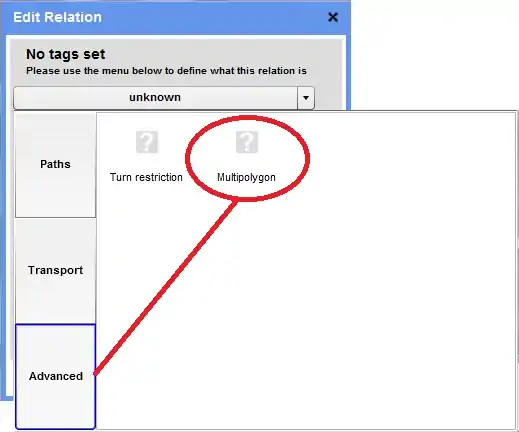 w którym klikamy na przycisk "advanced" wybierając opcję "multipolygon" - Należy wtedy w pojawiające się pole: