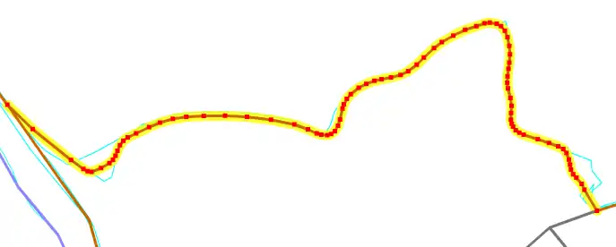 Uwaga: Pamiętaj, że droga na rysunku powyżej ma około 2 km długości. W przypadku bardzo krótkich dróg nie ma potrzeby dodawania zbyt wiele węzłów. Jeśli droga jest idealnie prosta, węzły po obu stronach odcinka są wystarczające, niezależnie od tego, jak długa jest linia.