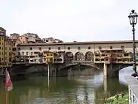 Możliwe jest również, że powierzchnie budynku i mostu nie są identyczne lub wiele budynków i innych obiektów znajduje się na moście, w tym przypadku budynek i inne obiekty powinny mieć tę samą warstwę co obiekt mostu i być oznaczone tagiem location=bridge.