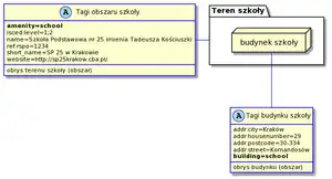 obiektu i dodajemy tag building=school.