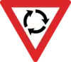 | Skrzyżowanie dróg, na którym ruch odbywa się wokół nieprzejezdnej wyspy i ma pierwszeństwo przejazdu. |