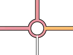 Klasyczne minirondo, gdzie centrum jest tylko namalowanym kołem. W tym przypadku tag direction=* powinien być określony, ponieważ jego wartością domyślną jest kierunek w lewo, gdy używany w połączeniu z minirondem. |