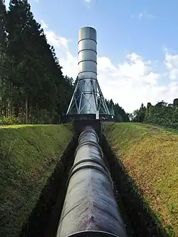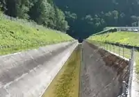 You will find shafts/chimneys near of service buildings hosting valves, linked by the waterway. Access to shaft isn't possible in operation as the tank is filled with water.