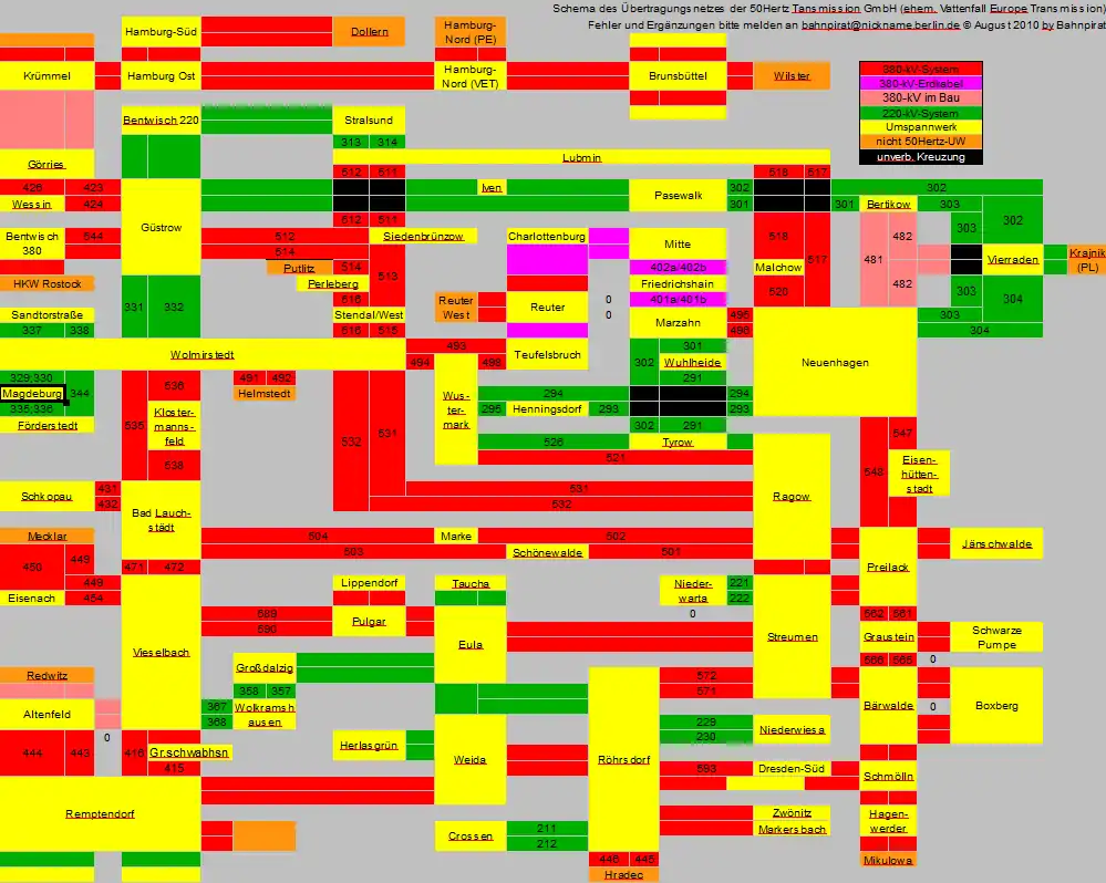 | Leitung | Umspannwerk | Leitung | Umspannwerk | Putlitz | Umspannwerk | Leitung | Umspannwerk | Leitung | ||