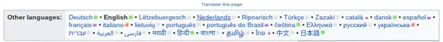 The <languages/> tag is added to only to the source page. It will automatically show up in all translations. This navigation box also provides colored boxes to indicate what percentage the translation is complete.