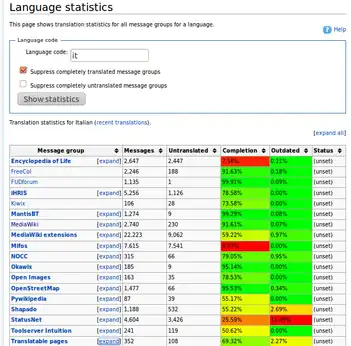The extension offers many pages that show translation statistics of languages on the wiki and even graphical reports.