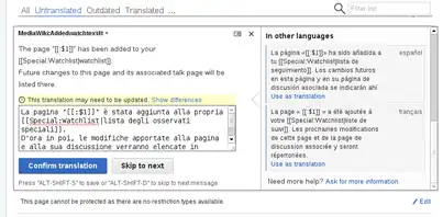 - I've been using this extension on TranslateWiki, and before I started translating the OSM home page there, I had to correct thousands of errors resulting from several hundred messages being translated by dozens of people, often unrelated to OSM and ignorant of what they were translating. I wrote more about it here.