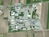 A substation at Dürnrohr/Austria for the distribution of natural gas (building and area at the left side). |