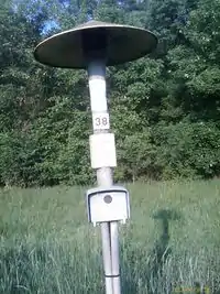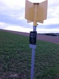 Marker of the WAG pipeline, mounted on a pole, with roof cover #49. |