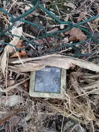A (very old) marker stone located on the ground. |