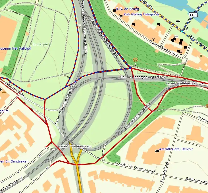 Recent routing approach: more separate drawn lanes because of routing. "Wrong" look in heigh zoom level.