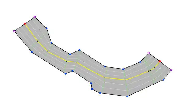Surfaces are divided in "regular" street areas and "crossing" areas (pipes and screw parts).