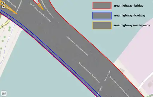 | man_made | bridge | Bridge as area - please use existing tagging: man_made=bridge. | ||