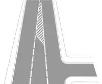 | area:highway | emergency | Before using this tag, read the dispute on the talk page. This tag value may change. striped divider area like in this pict on the right side. When drawing the lines inside a barred area (area:highway=emergency), renderers should take into account any direction=* tag on such areas. Permitted values are angles and cardinal directions. |