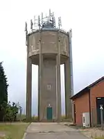 | mobile phone on a water tower | man_made=water_tower communication:mobile_phone=yes | A mobile phone base station (BTS) mounted to a water tower | ![]() GSM base station on a water tower | |