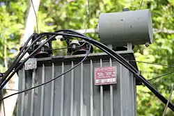 Some remote switches mostly installed on distribution networks can be found on top of poles. Some of them are remotely controllable and need power to operate. A small transformer is installed on the pole to get its power directly from the network. It acts as an auxiliary transformer to feed the local operator's premises without ay subscriber connected. |