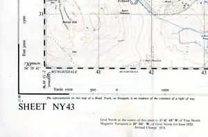 • Sheet number - Shown in the bottom left hand corner of the map (and generally also on the cover for folded versions). Initially the first two digits of the sheet number were also numbers, later these were changed to the OS Grid classification system. eg 30/67 became SY67.