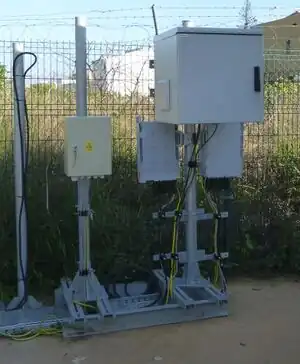 Instalação típica da DIGI com o bastidor instalado em pilarete metálico no solo |