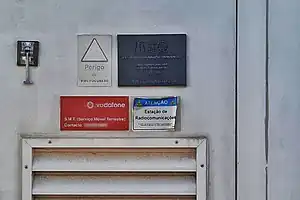 Placas identificadoras numa torre partilhada Vodafone e MEO |