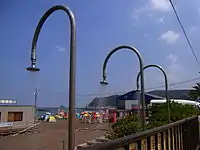 | Chuveiro público: estrutura de acesso público, gratuito ou sob pagamento, onde se pode tomar banho de chuveiro. Muito comum por exemplo em piscinas públicas e algumas praias. |