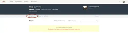- Once the project page was created. To add form in the project, by clicking Add Form.