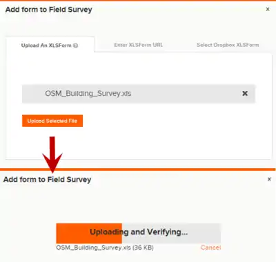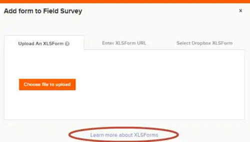 - If you already created the form file, select Upload An XLSForm then click Choose file to upload.