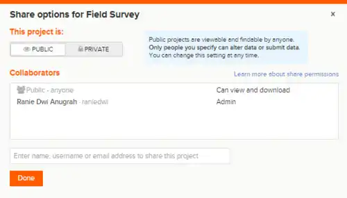 - For project options, select Public that your project will be seen and discovered by others. Then click Done.