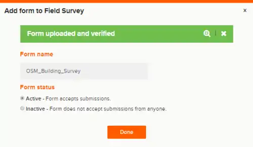 - After uploading and verifying process is complete, select Active to inform the status form then click Done.