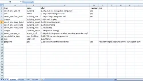 - Make sure survey form file into .xls format. If you have not created the file, following the website about how to create survey form file. For example, display from survey from into xls format.