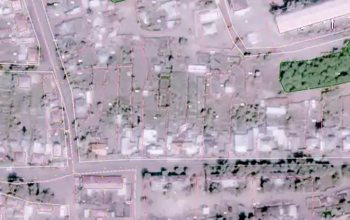 2. Подложка кадастра сильно смещена, а плагин смещений пока не знает. Если вы подвинете подложку Кадастра на правильное место, то придётся делать геометрические операции в голове: "я жму на подложку здесь, значит точка на самом деле там". Если оставить подложку на месте, тоже придётся много упражняться: "дом здесь, значит жмём левее на столько метров".