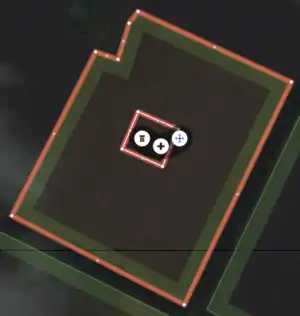 - Полигон — инструмент для рисования областей (объектов, имеющих площадь — зданий, лесов, озёр и т.д.). Рисование с его помощью напоминает инструмент "линия": просто представьте, что вы идёте по периметру объекта, последовательно отмечая точки поворота.