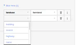 В верхней части этого меню расположен шаблон с несколькими полями для заполнения (они разные для разных объектов). Если вы щёлкните по большой кнопке с именем заготовки в самом верху, то вернётесь обратно в меню выбора заготовки. Нажав кнопку "i" рядом с этой, вы получите краткую справку по заготовке и ссылку на соответствующую страницу вики для основного тега заготовки. Это очень полезно, чтобы понять, правильно ли вы выбрали заготовку — обязательно почитайте страницу вики по тегу!