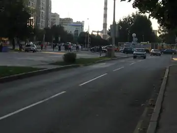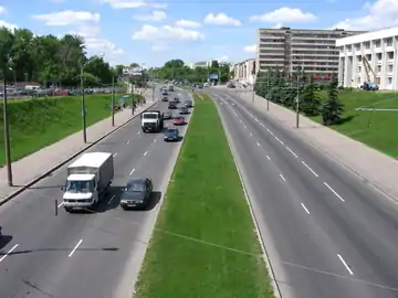 Дорога с разделительной полосой и тремя полосами в каждую сторону