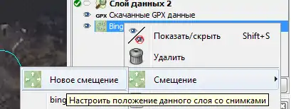 Нажмите правую кнопку на слое снимков («Bing Sat» в нашем случае) и выберите «Новое смещение».