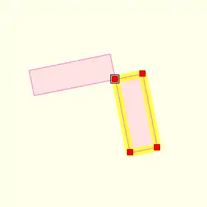 | В JOSM (общая точка имеет бо́льший размер, по сравнению с остальными). | В Potlatch 2 (выделено одно из зданий, общая точка имеет дополнительную обводку). |