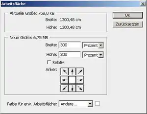 Простейший метод: Arbeitsfläche (nicht Bildgröße, nicht die Auflösung) auf 300% horizontal und vertikal erhöhen.