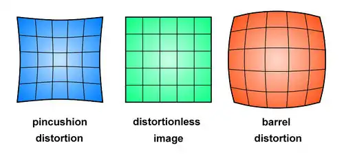Общедоступные объективы дают бочкообразное (barrel) искажение, которое зависит от фокусного расстояния: шире угол - сильнее искажение.