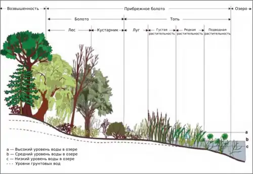 Эти области могут быть затоплены во время высокого уровня воды и покрыты растениями при низком уровне воды. Отметьте такие области тегами natural=wetland + wetland=marsh;swamp;reedbed. Не допускайте двойных тегов или наложения с дублирующимся полигоном water=river или natural=water, поскольку определение заболоченных земель указывает на периодическое покрытие речной водой.