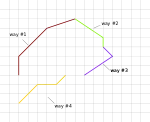 - Relation:route - like multilinestring but contiguous, forming a route that can be followed from end to end