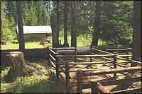 A paddock box is a stall (box) for a horse with a very small adjacent outdoor enclosure which grants access to the open air but does not allow grazing. A paddock box is tagged just like a stable with an adjacent paddock area. | ![]() | |