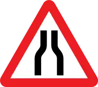 Road narrows on both sides ahead | traffic_calming=choker on the part of the way |