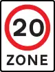 20 zones tend to be residential areas with traffic calming measures, with a 20 mph maximum speed throughout the zone. At the exits from the zones there is a different sign which indicates both the end of the 20 mph limit and what the new speed limit is beyond the zone. Unlike ordinary 20mph limits, 20 zones are intended to be self-enforcing by the traffic calming system. Note: The similar looking 'Twenty's Plenty' signs (with a green, not red, circle) are not legal limits and should be signed with maxspeed:advised=20 mph. |
