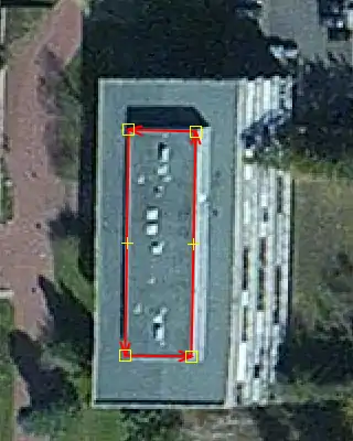 - Draw along the outline of the roof, apply rectangularization (e.g. JOSM 'q' key) if so desired.