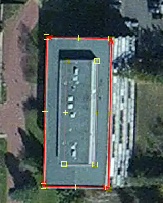 - A matching corner (on this picture the lower left corner of the drawn polygon), is placed correctly on the aerial photograph.