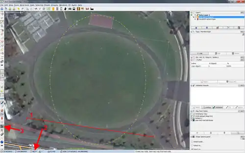 1. Draw a rectangle describing an ellipse on the map. Activate this shape.